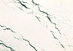 Dark teal diagonal veins on an arctic white expanse create a powerful sense of depth while delicate gold shimmer adds a playful, effervescent quality.