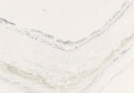 Soft colors—warm tan and cool gray—undulate as flowing streams with delicately stippled charcoal speckles against a bright white marbled background.