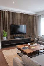 Create tranquil sanctuaries within your spaces with Tawny Acoustic Wood Slat Wall Panels in medium brown. These wood wall panels feature fluted wood that requires no staining or sanding, blending elegance with functionality. Meticulously crafted, each panel showcases a captivating composition of natural wood mounted on a state-of-the-art acoustic fiber pad, delivering unparalleled sound absorption without sacrificing visual appeal. Perfect for enhancing living rooms, conference rooms, and office spaces, these acoustic wall panels serve as decorative accents and sound barriers, seamlessly integrating into any interior design. Simplify installation with straightforward screw-to-stud mounting, making them the preferred choice for homeowners and businesses seeking a seamless blend of aesthetics and acoustic excellence.